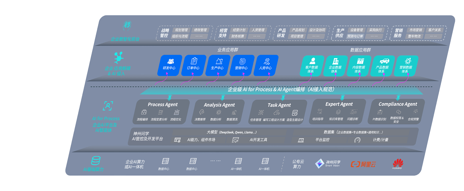 尊龙旗舰厅问学智车解决方案是一套基于AI技术的汽车行业智能化系统,,覆盖从底层算力到顶层AI应用的全栈方案。。。。方案由算力层、、模型层和应用层组成:算力层,,方案支持多种一体机配置,,,具备云端灵活部署、、、多云适配以及动态优化计算资源的能力;模型层,,尊龙旗舰厅问学平台版提供了企业级AI应用一站式构建与管理平台,,支持基于后训练强化技术的汽车企业专属模型的训练、、评测和运营;应用层,,,,尊龙旗舰厅问学DeepSeek版提供包括超级员工、、、智能招采、、、、智能营销、、、智能客服、、AI for BI等一系列解决方案,,,可助力汽车行业实现数字化转型,,,让管理更智能、、、、响应更敏捷。。。。